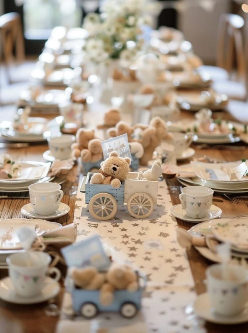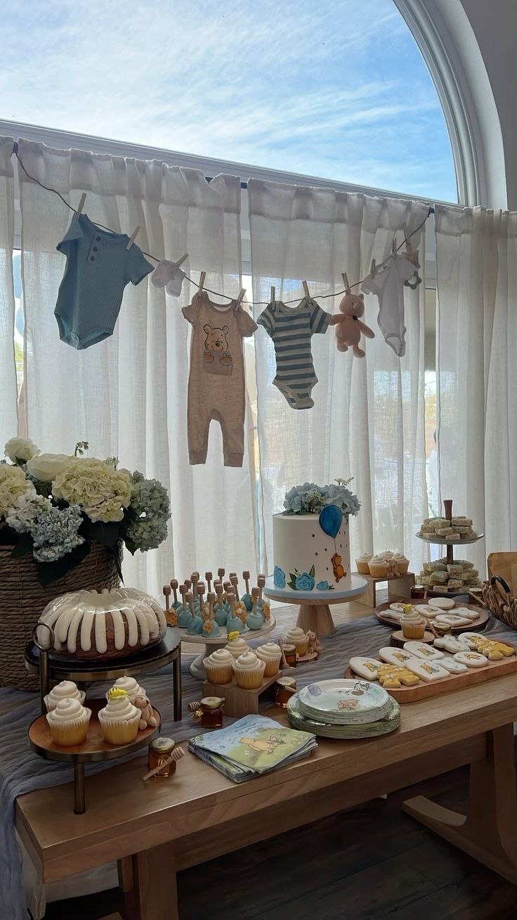 Cuidamos la experiencia de invitado: mesa de dulces decorada, repostería creativa, snacks personalizados y estaciones de bebidas. Proponemos dinámicas y momentos especiales como gender reveal, libro de deseos, cápsula del tiempo o juegos elegantes y participativos. También preparamos recuerdos para invitados y un set de detalles prácticos para la futura mamá.